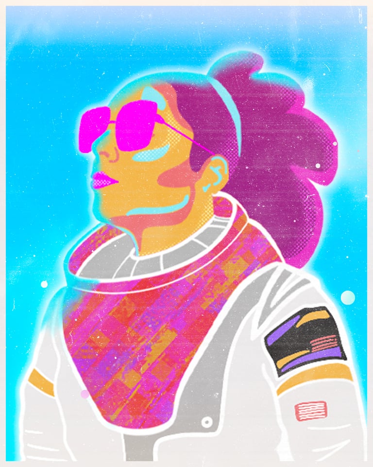 Je voulais retranscrire l'énergie ultra électrique qui se dégage quand il est derrière la platine tout en respectant sa charte graphique avec le cyan et le magenta. ⚡